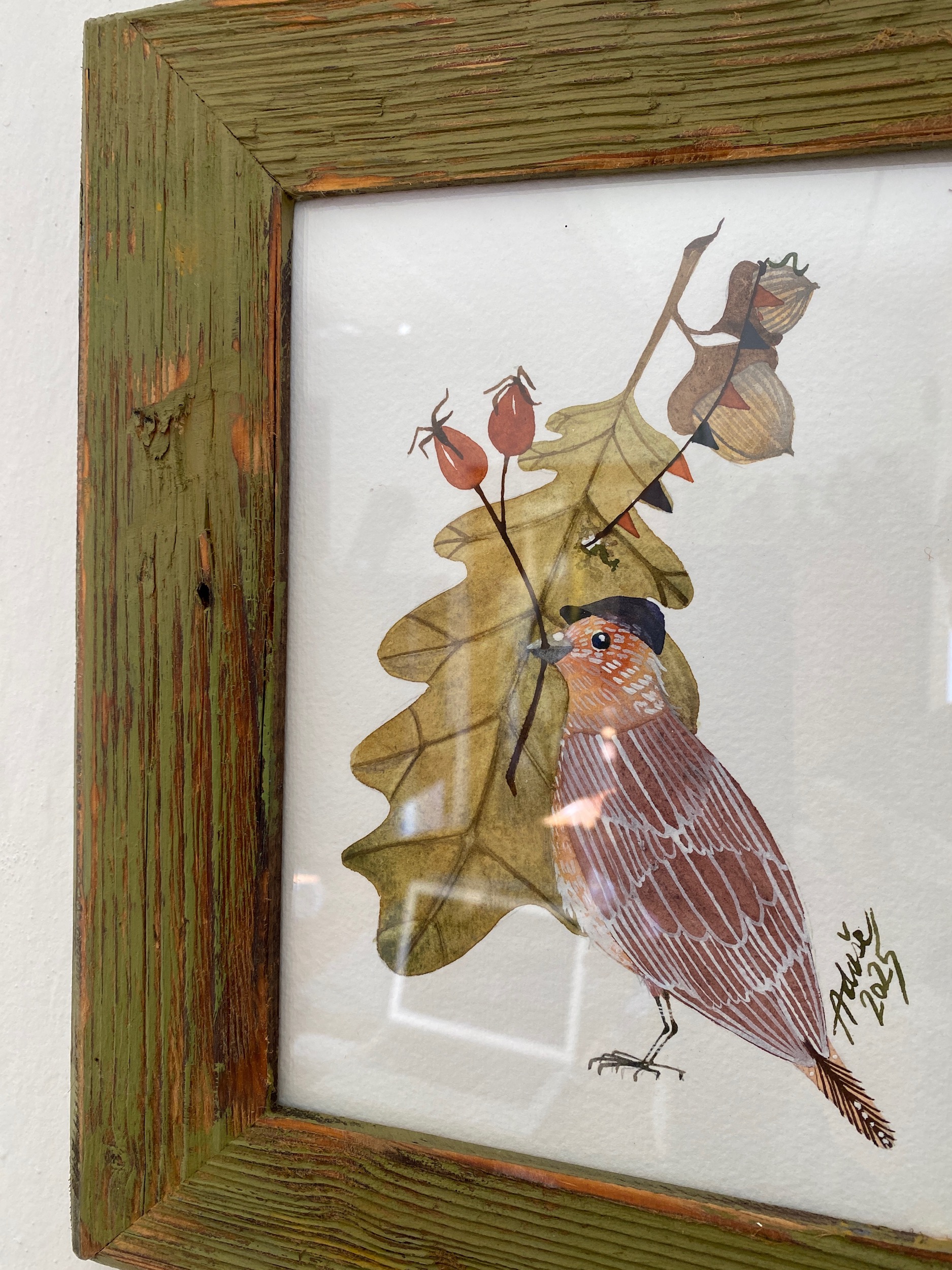 Originální obraz ptáčka jarabáčka s podzimním tématikou.