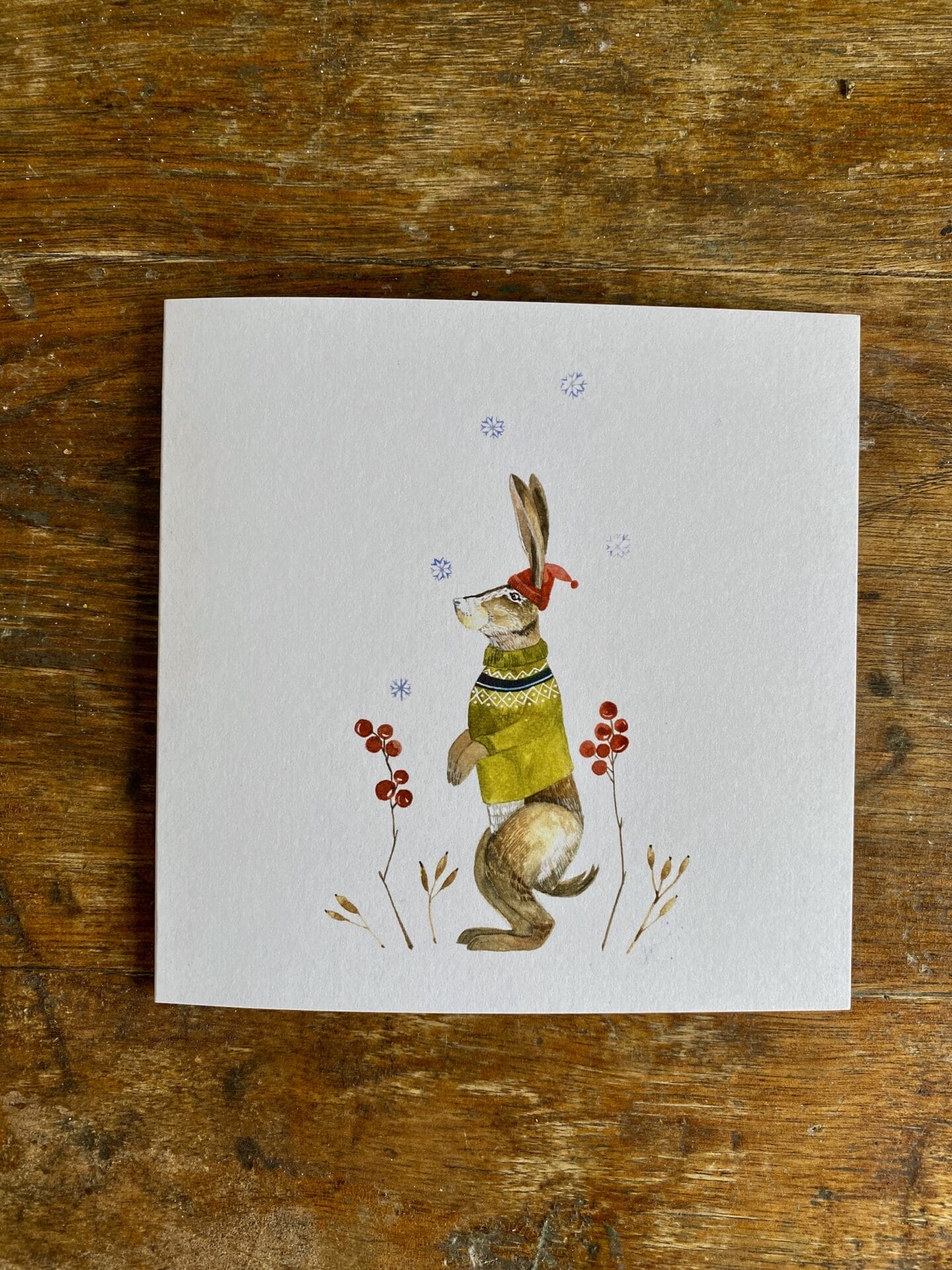 Přáníčko s motivem zajíce je uvnitř prázdné bez textu, dodávané v setu společně s obálkou z recyklovaného papíru.
